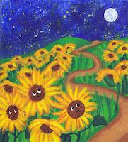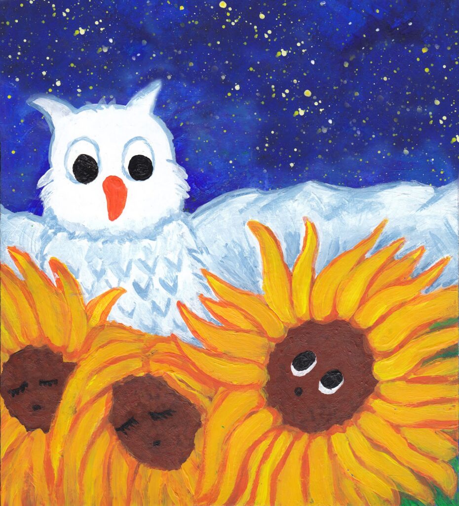 Ilustración del cuento  “El Girasol y la Noche” escrito por Carla María Berdegué. Editorial La Hoguera. La Paz, Bolivia 2013.